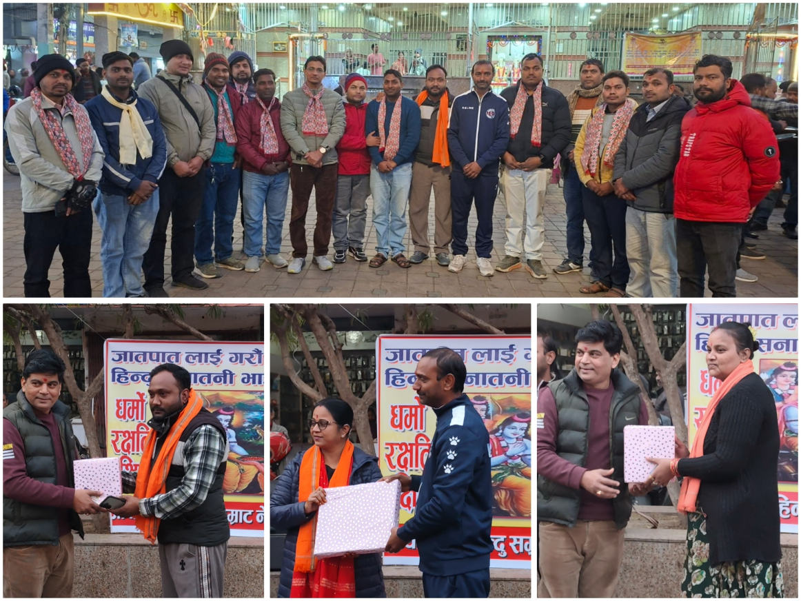 हिन्दू पत्रकार संघका पदाधिकारी र धार्मिक अभियन्ताहरू माईस्थानमा सम्मानित: "जातपात बिदाइ गरौँ, सनातनी भाइ-भाइ बनौँ" वीरगन्ज-