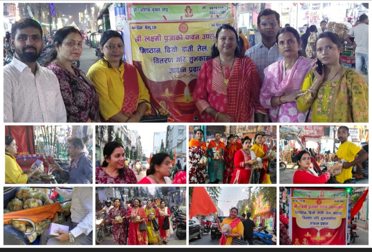 वीरगञ्जमा विश्व हिन्दू परिषद् नेपालद्वारा श्री लक्ष्मी पूजाको अवसरमा दीपदान तथा शुभकामना आदान–प्रदान कार्यक्रम सम्पन्न